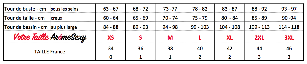 Le site internet et les fiches détaillées des lingeries m’ont permis de faire le bon choix de la taille. Les ensembles sexy sont de très bonnes qualités, agréables à porter, la livraison soignée et rapide.