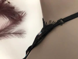 Une douce musique émane de cette composition érotique noire brodée avec son string et ses fleurs colorées, soulignée d’une bordure dentelée noire. Un ensemble de qualité à deux temps pour vivre au rythme de la romance sentimentale.